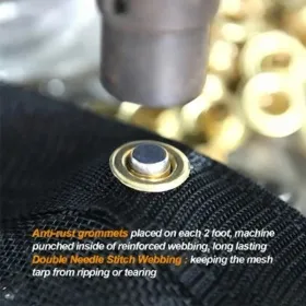 The construction include durable polyester yarn for sewing thread, double stitched hems and high-strength brass grommets along sides and four corners. The pocket of the multi-color PVC mesh tarp is built for the dump truck tarp system. and trailer systems. The multi-color PVC mesh tarp is easy to clean by and convenient for storage.