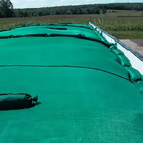 By placing the silo bags every 5 meters crosswise, the protective silo cover is fixed and extra weighting is obtained. There is no need to use and handle wet tyres and reduce the risk of injury from handling worn tyres.